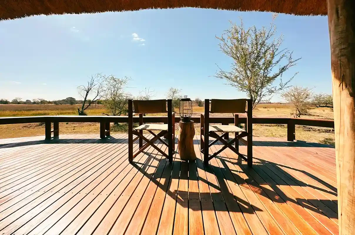 Tucked beneath the towering palms of the Okavango Delta, our private rooms offer a peaceful haven after a day of safari exploration. Each unit is designed for comfort and simplicity, featuring earthy textures, large windows that invite in the golden Delta light, and thoughtful touches of handcrafted décor. A fully equipped kitchen, open-plan lounge, and shaded deck allow you to feel at home while immersed in the wilderness.